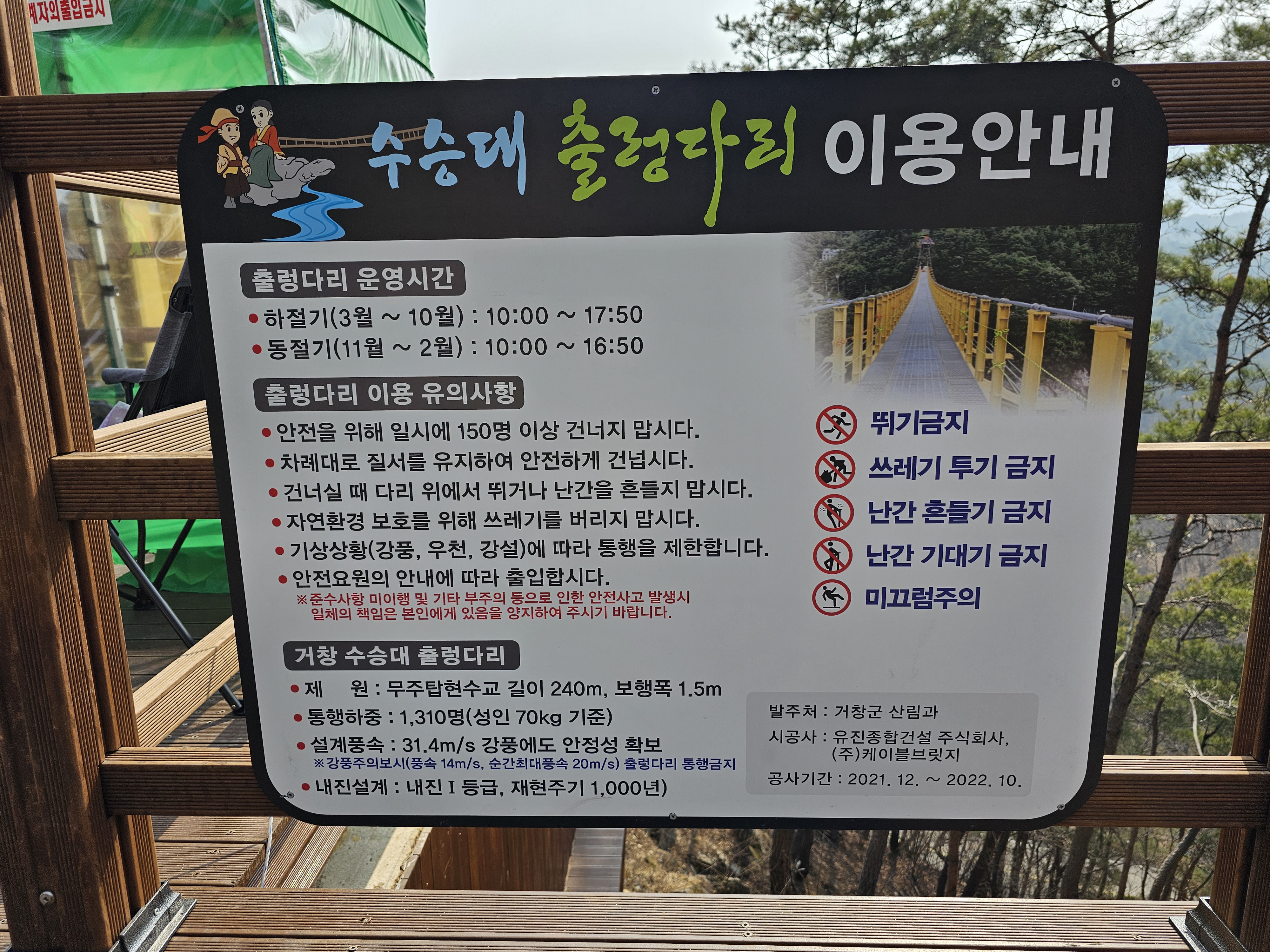 경상남도 거창군 위천면 황산리 수승대는 국가지정 보물 제53호로 덕유산국립공원 황산리 산기슭에 속한다. 천연암인 거북바위는 수승대로에 높이 약 10m, 높이 약 50평이며, 거북을 닮았다고 해서 구연대 또는 암구내라고도 한다. 이용하기 시작했는데 최근 수승대 계곡 상류에 수승대 출렁다리가 개통되어 많은 사랑을 받고 있습니다.
